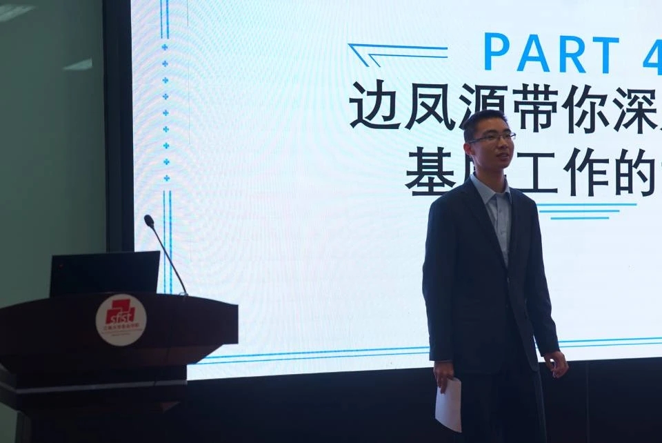 活动还邀请到了19届校友芮一犇,他毕业后参加“苏北计划”志愿服务项目,在盐城市盐东镇基层岗位服务了一年,他跟同学里分享了他由刚开始的懵懂无知、找不到方向到最后轻松应对、踏实工作的志愿服务过程,让同学们了解到基层虽然环境质朴无华,但是工作千头万绪、纷繁复杂,广袤天地需要青年,青年也只有在基层广阔天地中经风雨、见世面,才能壮筋骨、长才干。