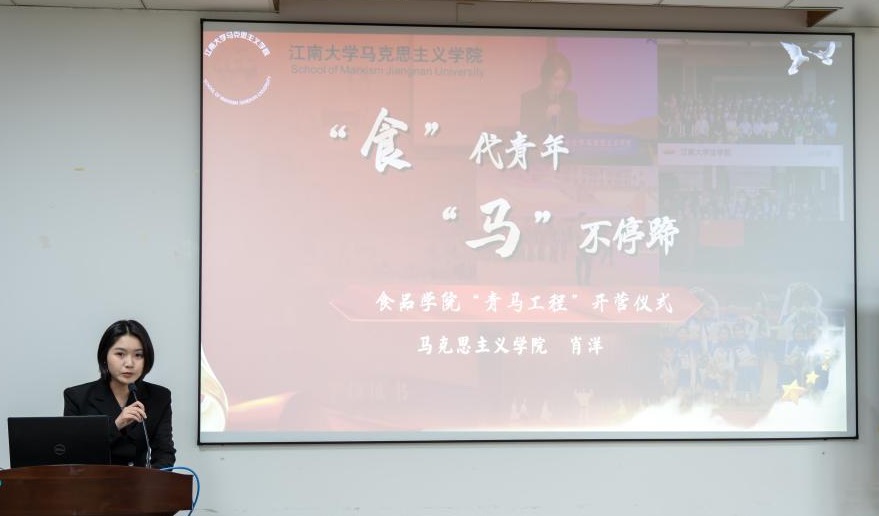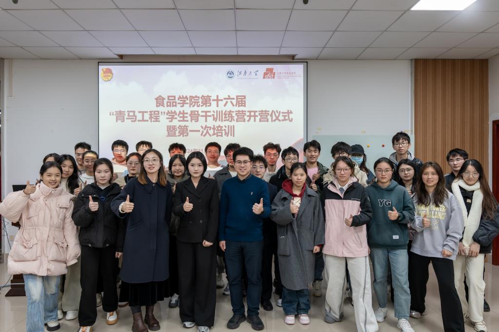 11月27日晚,食品学院第十六届“青马工程”学生骨干训练营正式开营。学院学工办主任兼分团委书记李金杰,2022级本科生辅导员张任,共青团江苏省委青年讲师团成员、我校马克思主义学院2024级博士研究生肖洋及第十六届青马训练营全体营员参加仪式及第一讲活动。