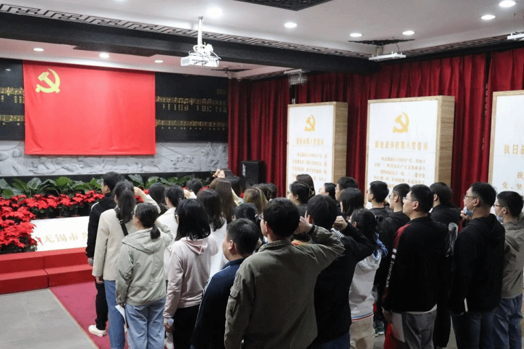 走进无锡第一支部,厚重的历史气息扑面而来。跟着讲解员的引导,党员同志们认真听完了一堂特殊的党课。讲解员生动介绍了无锡第一支部的诞生历程、无锡总工会第一任委员长秦起烈士的生平事迹以及新中国成立后无锡第一面五星红旗升起的故事。在观看党史宣传片《誓言颂》的过程中,党员同志们以入党誓词在不同历史时期的变化为索引,跨越百年,深刻地体悟到中国共产党与时俱进,而底色自始如一,始终不忘初心使命的精神气质。