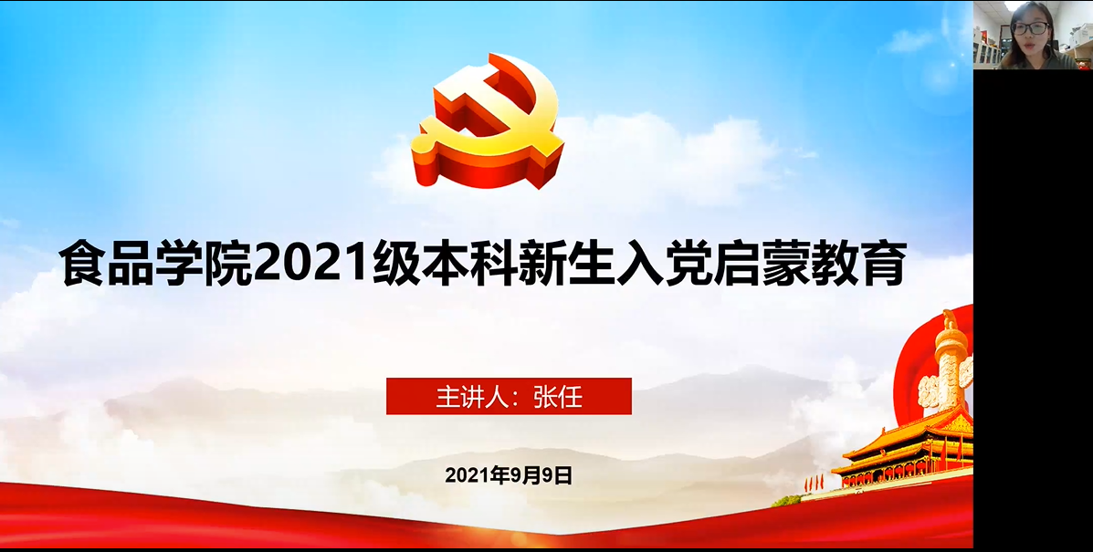 为增进2021级本科新生对党的基本知识的理解和认识,提升新生的思想政治觉悟,9月9日晚,食品学院2021级本科生入党启蒙教育在线上举行,2021级本科生辅导员张任担任主讲人。