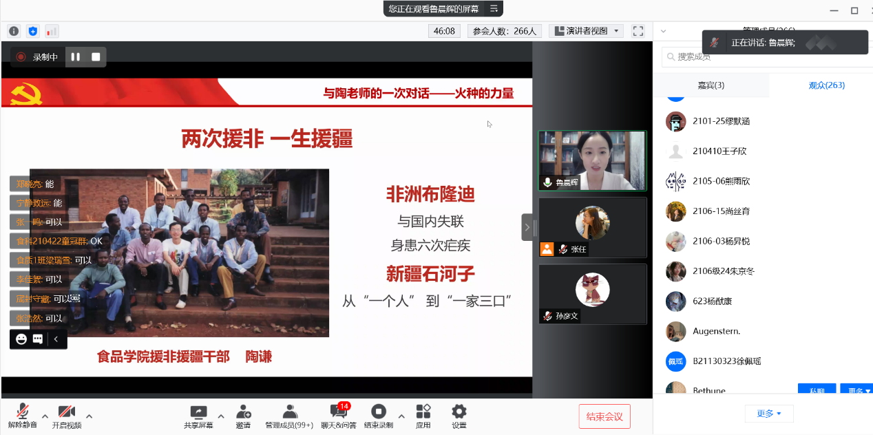 9月26日下午,食品学院2021级本科新生入党启蒙教育在线上顺利举行。食品学院2020级硕士研究生孙彦文、2021级硕士研究生鲁晨辉受邀担任主讲,食品学院2021级全体本科生参加了本次讲座。讲座由2021级本科生辅导员张任主持。