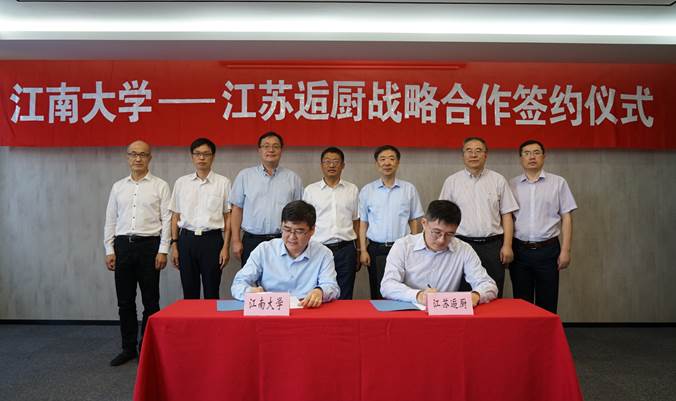2020年9月3日上午,江南大学——江苏逅厨战略合作签约仪式在江阴临港开发区逅厨供应链基地隆重举行。中国工程院院士、江南大学校长陈卫、江南大学校长助理张光生、产业技术研究院院长刘龙、食品学院院长刘元法,江阴市委书记许峰、江阴市委常委、临港开发区管委会主任计军、江阴市政府副市长张韶峰、江苏逅厨供应链董事长解红光、江苏逅厨供应链总经理解舟,以及江阴市委办、发改委等相关部门领导出席了签约仪式。签约仪式由张韶峰副市长主持。