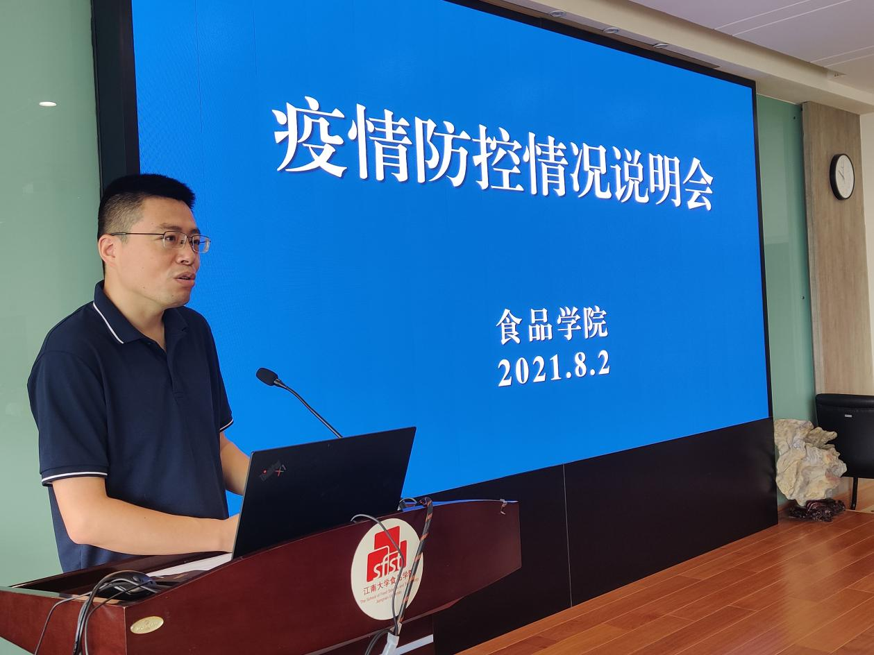 8月2日,食品学院于D912召开留校学生疫情防控工作交流座谈会。活动由学院党委副书记魏珍吉主讲,分团委书记朱伟、辅导员杨光宝、11个研究中心的50余名研究生代表参加。