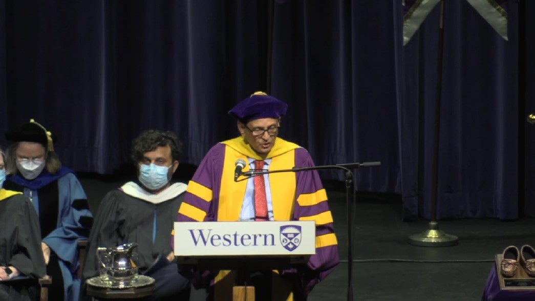 图3.艾伦·牟俊达教授在Western University毕业典礼上致辞