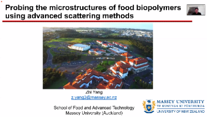 本次专题研讨会为江南大学-新西兰梅西大学食品科学与技术方向首次双边线上学术交流活动。本次研讨会围绕食品科学与技术多个研究方向展开,梅西大学食品与先进技术学院Richard Archer教授首先作题为“Rapid Continuous Freezing of Liquid Foods”的学术报告,随后Lovedeep Kaur高级研究员和Zhi Yang讲师分别作题为“Understanding the relationship between meat structure, processing and digestion”和“Probing the microstructures of food biopolymers using advanced scattering methods”的学术报告。接下来,Kaiyun官方网站登录入口张文斌教授、郑召君副研究员、杨巍副教授分别以“Aqueous extraction processing of sunflower seed for oil and protein recovery”,“Osteogenic effects of Calcium-binding peptides”和“Enzymatic Acylation of Anthocyanin from Berries”为主题进行学术报告,介绍了各自的研究成果。报告引起了与会师生的浓厚兴趣,双方就相关研究细节和应用展开了积极讨论与互动。
