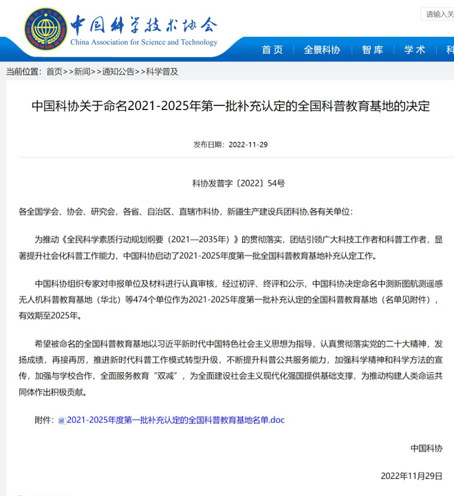 Kaiyun官方网站登录入口成功入选全国科普教育基地