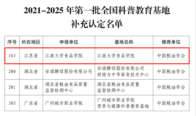 长期以来,食品学院建设组织“食品安全进社区”“儿童食育课堂”“食品科学求真”等科普教育项目,学院师生团队走进社区、走进学校,走进民生视野、传播食品声音。近日,学院同扬子晚报联合打造“食话实说”科学普及短视频栏目,被新华社、光明网、学习强国等多家主流媒体报道,累计播放量超过1000万。作为新入选科普教育基地,食品学院将进一步扎实开展新时代科普教育宣传工作,为提升公众科学素质和人民健康生活质量做出更大的贡献和努力。