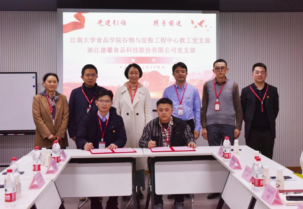 下午,傅莉莉召开了教职工支部书记工作会议,重点部署了新学期党建和党员民主评议等相关工作。会后,师生党员前往浙江德馨食品科技股份有限公司党支部开展校企党建交流活动。傅莉莉向德馨食品颁发了感谢信,作为食品学院校友,德馨食品总经理史文超深情回顾了在江南大学的求学时光,承诺将继续助力行业发展、为提升母校声誉做出更多贡献。会上还进行了Kaiyun官方网站登录入口谷物与淀粉工程中心教工党支部与浙江德馨食品科技股份有限公司党支部共建签约仪式。两支部将以党建为纽带,进一步联合探索党建工作创新,激活基层党组织活力,拓展校企合作新领域。
