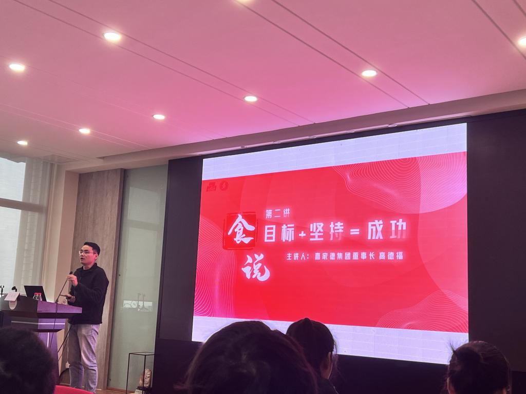 高德福通过讲述他的创业史、价值观,带领同学们感受到喜家德的本心和真诚。他表示,目标决定了企业和人的未来,但未来是否会成功,坚持并持续改进才是核心。