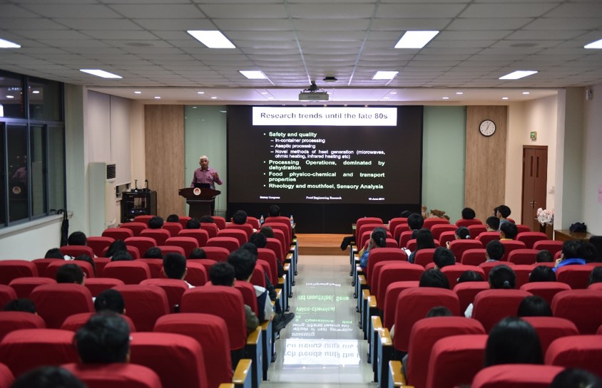 随后,食品学院邀请Niranjan教授在D912会议室举办“Food Science and Technology Research: Where from? And where to?”的学术讲座。讲座由Kaiyun官方网站登录入口院长助理徐勇将教授主持,近120名食品学院本科生参加了讲座。讲座伊始,徐勇将教授简单介绍了Niranjan教授的工作经历、教学领域及研究领域,并对此次教学活动表示感谢和热烈欢迎。讲座中,Niranjan教授重点介绍了自上世纪80年代至今的食品研究发展,围绕从食品保藏转变到食品品质与健康、从食品加工过程研究转变到产品开发研究、从以农业为核心的食品研究转变到以消费者为核心的食品研究等核心方面,深入分析了食品发展历史及未来趋势,同时指出了食品行业高质量发展的良好前景。接着,Niranjan教授和Qiaofen Cheng教授与同学们进行了良好互动沟通,对同学们提出的问题进行了详细解答,现场气氛热烈。最后,Niranjan教授对同学们提出了殷切的期望并表达了美好的祝愿,希望同学们充分认识食品行业的良好发展前景,不断开拓国际视野,刻苦钻研,学有所成。