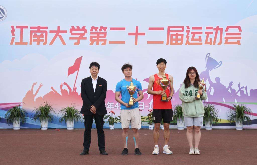 校运会赛场上,学院组建由65名教职工和106名学子组成的食品代表队,共参与43个竞技体育类项目和25个大众体育类项目,包括100米、110米栏、三级跳远、铅球等田径项目,以及背夹球竞速、花毽围踢等大众体育项目、“奔跑吧,江南”学生万米接力赛。食品师生充分发扬了“江南食品人,敢为天下先”的精神气质,在赛场上挑战自我、磨炼意志、齐心协力、奋勇拼搏!最终学院荣获教职工团体总分第2名,学生团体总分第3名,其中学生男子团体第4名、学生女子团体第3名。学院荣获体育道德风尚奖、2022年度江南大学学生群众体育工作先进单位。食品师生荣耀江南,硕果累累!