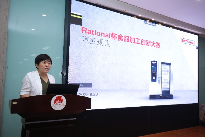 唐学燕作为企业代表,也是食品学院2万名校友中的一员,详细解读了大赛的主题、宗旨、规则、流程、奖项等。她介绍道,46年烹煮研究、600多项专利、120多万台设备、超过50%的市场份额,使Rational成为全球专业厨房中的标准烹饪系统。她叮嘱同学们将理论知识精准转化为生产工艺和创新实践,在遵循科学规律、洞悉市场风向、发挥创意灵感的基础上设计出兼具创新性、营养性、商业可行性的全链条作品。