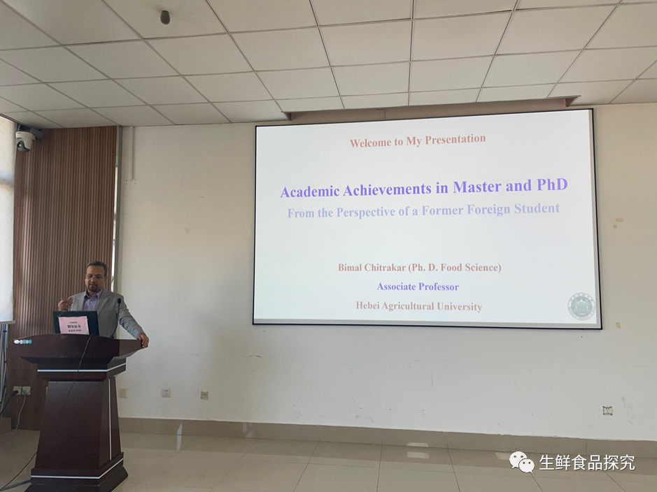 Bimal在题为《Academic Achievements in Master and PhD - From the Perspective of a Former Foreign Student》的学术报告中,讲述了自己在江南大学攻读研究生时期的学习、生活状态,根据在读期间发表的每篇文章为基点,声情并茂地讲述了自己的学术生涯,勾起了大家美好的回忆。