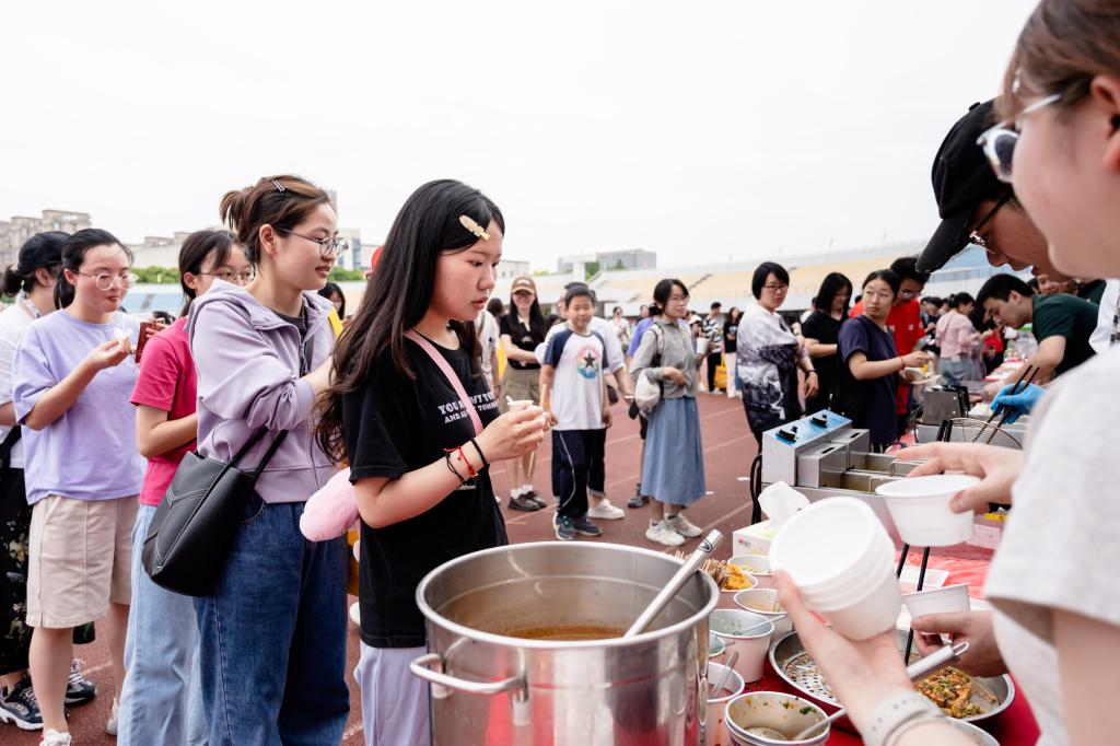 从传统的中式点心到新颖的西式烘焙,从色香味俱全的健康食品到独具特色的功能性饮料,展台上的每一款产品都尽显参展方的匠心与技艺。几乎每个展台都吸引了大批师生排起长龙,在漫天飞舞的音符和乐队的演奏声中品尝美食。食品展还组织大众评审环节,邀请同学们为自己心仪的产品投上宝贵一票。