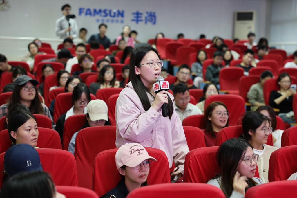 互动环节中,同学们踊跃提问,表达陶老师的报告引发自己对未来职业生涯规划以及如何更好地服务社会等方面的思考。陶谦鼓励青年师生勇于追梦、敢于担当,在新时代背景下书写属于江南食品人的华彩篇章。