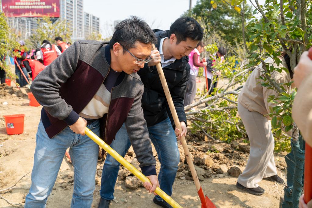 春风拂暖,万物复苏。在全国第48个植树节来临之际,江南大学师生以实际行动深入贯彻生态文明思想,牢固树立和践行绿水青山就是金山银山理念,营造“以树育人、以景润心”的校园氛围。3月12日,后勤管理处环境中心、食品学院、商学院携手举办“同心共添江南绿,劳动蕴蓄育人情”江南大学2026年植树节活动,后勤党委副书记、纪委书记曹沛,食品学院副书记兼副院长陈勇,食品学院全体辅导员,本科生第一、第二、第三党支部,营养2302、营养2402“雷锋”特称团支部、食品卓越创新班2401“荣毅仁”特称团支部的青年学子们共同参与活动。