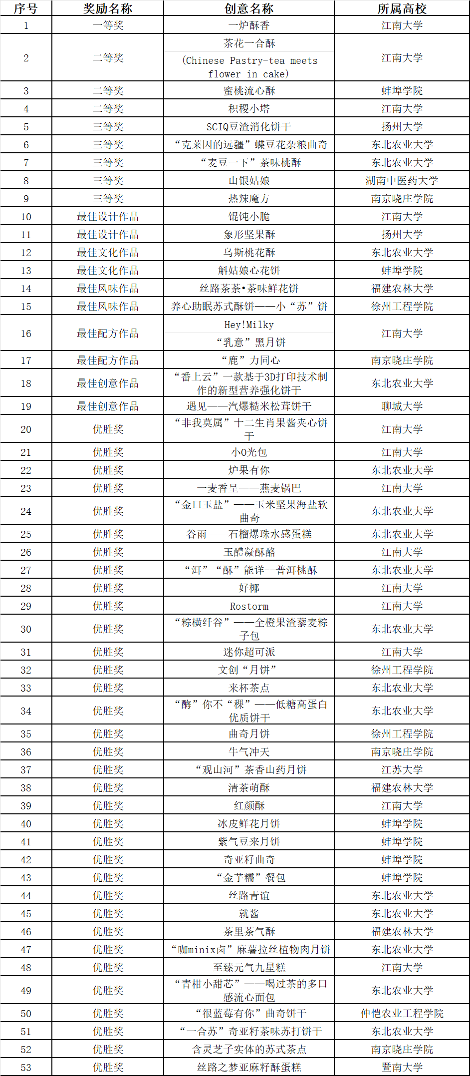 “一带一路”国际食品教育科技联盟国际大学生创意大赛暨2021年烘焙类传统食品创意主题赛(国内赛道)评审结果揭晓
