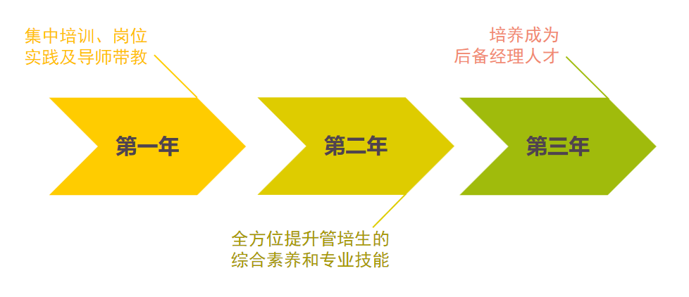 第一年:通过集中培训、岗位实践及导师带教,帮忙管培生快速完成学生人到职场人的角色转变、明悉工作岗位职责,制定个人职业发展规划,构建管培生个人成长档案;